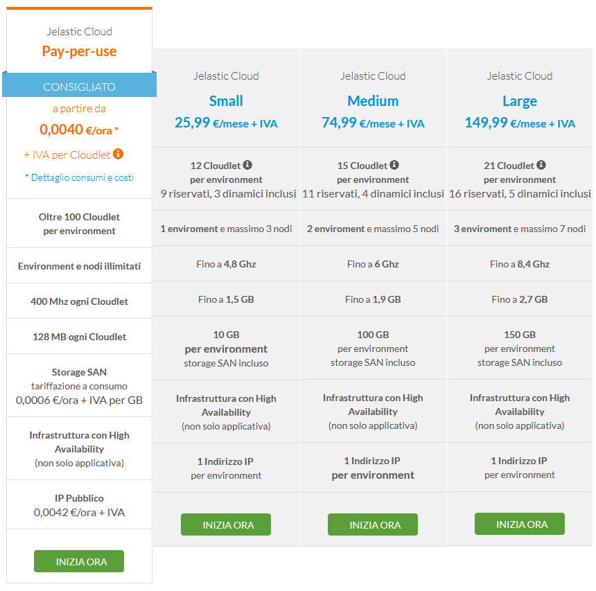 Il servizio è disponibile sia in modalità a consumo, con tariffazione pay-per-use che prevede di pagare per le sole risorse utilizzate, che in modalità a pacchetti preconfigurati con tariffazione a canone mensile.
