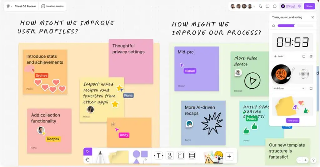 FigJam รจ una piattaforma di collaborazione visuale progettata da Figma, pensata per brainstorming, mappe mentali e workshop interattivi. Offre uno spazio flessibile dove i team possono condividere idee, creare diagrammi e lavorare su progetti creativi in tempo reale. Sebbene sia ottimizzato per il lavoro collaborativo, puรฒ essere adattato anche per scopi educativi e organizzativi.