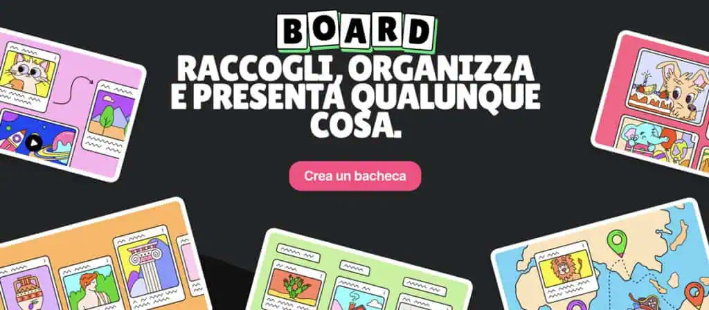 - Insegnanti e Scuole: La semplicitร di utilizzo lo rende perfetto per creare lezioni interattive e bacheche collaborative. Gli insegnanti possono raccogliere materiali didattici, organizzare progetti di gruppo o utilizzare la bacheca come spazio per il brainstorming durante le lezioni.