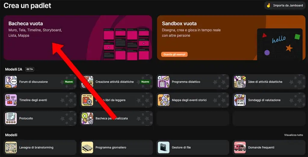 Alla pagina successiva clicca su “Crea Bacheca Vuota”: