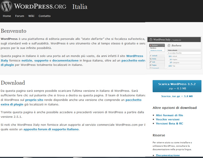 Sul sito it.wordpress.org invece è disponibile l’ultima versione localizzata in italiano.