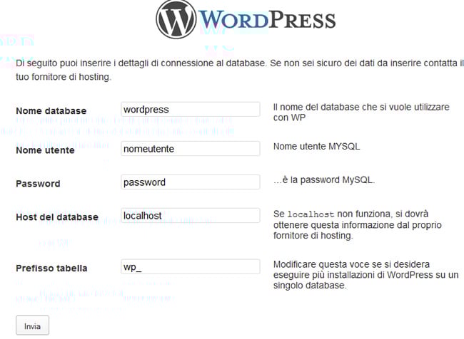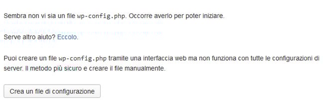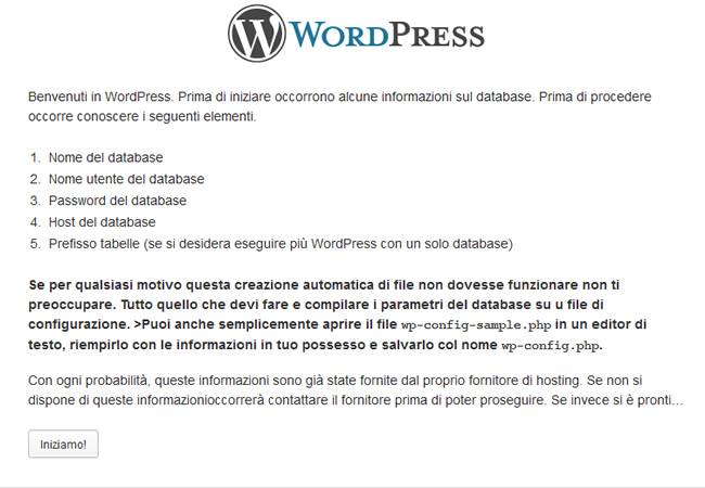 che contiene la configurazione di base di WordPress e che procedendo verrà creato.