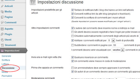 Impostazioni di WordPress: Discussione