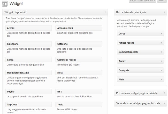 - Gestione Widget e Sidebar in cui inserire widget (applicazioni per la pubblicazione dei contenuti)