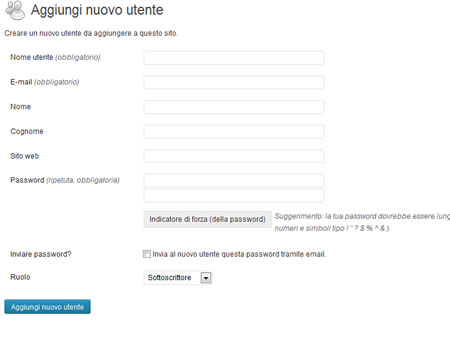 Si tratta quindi di un "super" amministratore come si direbbe in altri CMS, è quindi molto importante scegliere uno username ed una password non banale. Per aiutarci è presente un Indicatore di forza della password che ci indica quanto la nostra password risulta complessa e, di conseguenza, sicura.