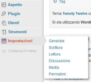 Le ultime lezioni di questa guida a WordPress 3.5 saranno dedicate all’ultima voce di menù presente nella sidebar, cioèla voce Impostazioni.