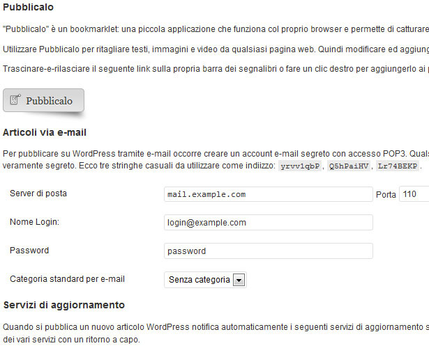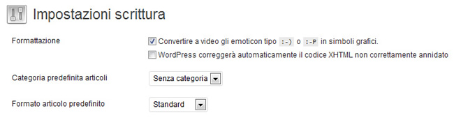 Le impostazioni di scrittura riguardano alcuni modi di inserire articoli all’interno del blog.