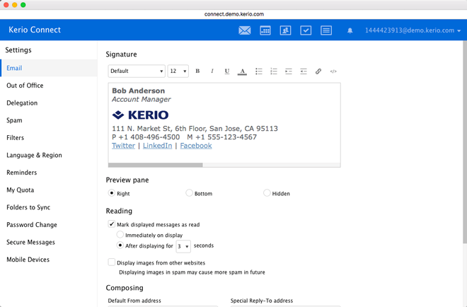 Grazie a Kerio Connect ciascun dominio di posta può essere gestito in totale autonomia e con la massima flessibilità: tramite un unico account, infatti, l’utilizzatore avrà la possibilità di amministrare tutte le caselle di posta all’interno di un ambiente semplice e potente.