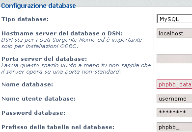Sarร inoltre possibile definire un prefisso da associare alle tabelle, in questo modo sarร possibile effettuare piรน installazioni di PhpBB all’interno di un unico database.