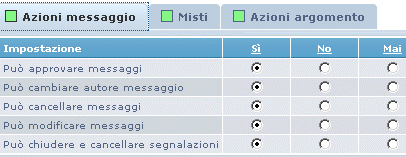 - Permesso: questa voce andrร abilitata se si desidera consentire il post di allegati con estensioni che appartengono a questo gruppo;
