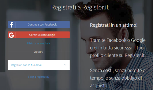 - TE LO FACCIAMO NOI: è la solzuione adatta per coloro che hanno poco tempo per realizzare da soli il proprio e-commerce. Comprende la consulenza di un esperto che realizzerà direttamente l’e-commerce sulla base delle direttive e delle esigenze del cliente al costo di 990,00 + IVA per il primo anno. In tal caso è sufficiente compilare un form per parlare con un consulente di Register.it e raccontare il progetto che si ha in mente di realizzare.