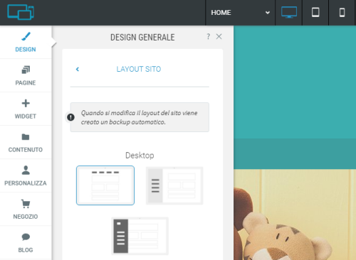 - un menu verticale, posizionato sulla sidebar sinistra, in cui sono reperibili tutti gli strumenti per la personalizzazione.