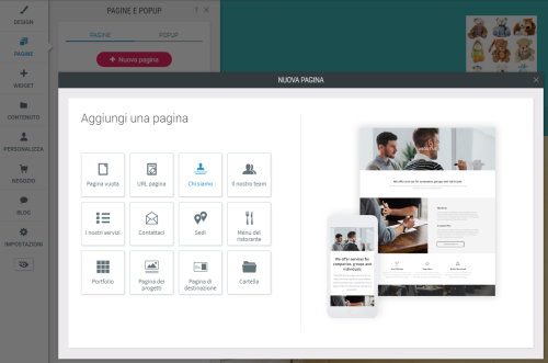 Lo strumento "Pagine" permette di aggiungere o eliminare pagine da sito Web, mentre il numero di pagine che si possono creare e pubblicare dipende dalla tipologia di offerta sottoscritta.