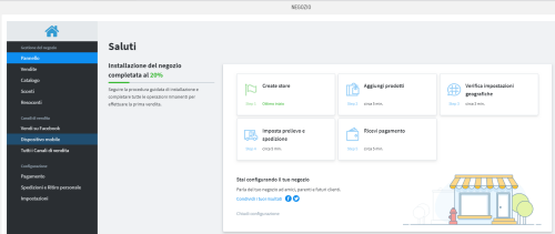 Terminata la parte relativa all’impostazione del catalogo con l’inserimento delle schede prodotto, è possibile proseguire nella creazione dello store andando a definire una serie di impostazioni che riguardano in particolare l’interazione con i potenziali acquirenti.