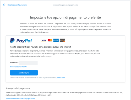 Le impostazioni di pagamento consentono di definire le proprie preferenze riguardo ai metodi e alle piattaforme attraverso le quali si desidera ricevere i pagamenti degli ordini. La prima opzione abilitabile è quella più utilizzata in assoluto in Rete, cioè PayPal, che può essere attivata indicando semplicemente l’indirizzo di posta elettronica associato al proprio conto.