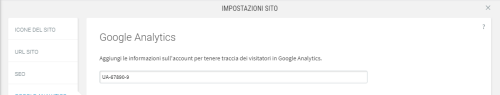 Se si gestisce un negozio di commercio elettronico è fondamentale monitorare l’attività online dei propri utenti. Per questo motivo la piattaforma consente di utilizzare il proprio account Google Analytics come strumento per il recupero delle statistiche. La procedura prevede un unico passaggio: l’indicazione al sistema del codice Google Analytics da impiegare.