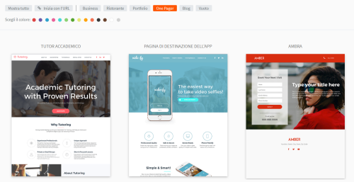 La scelta del giusto design per il proprio sito Web è un passaggio fondamentale per il successo di un progetto online, da questo punto di vista Simply Site offre una vasta selezione di template personalizzabili in modo da soddisfare un ampio ventaglio esigenze. L’intera offerta è poi rispettosa dei dettami del Responsive Design in modo da ottenere sempre il miglior risultato possibile, indipendentemente dal device utilizzato per la visualizzazione. Come impostazione predefinita la piattaforma mostra tutti i modelli disponibili, che sono veramente numerosi, ma sono consentite delle selezioni più precise, ad esempio sulla base di un colore o di una categoria di riferimento ("business", "ristorante", "portfolio", "blog"..).