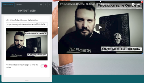 Se invece si preferisce l’inserimento di un video, che sarà visibile soltanto su Desktop, è possibile indicare al sistema l’URL di un filmato presente sulle principali piattaforme per lo streaming online (YouTube, Vimeo e DailyMotion):