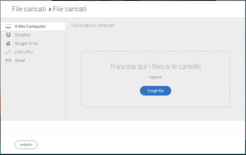 Nello stesso modo la sezione "Gestione File" permette di caricare dei file, ad esempio dei documenti, in un sito Internet. E’ possibile uploadare file dal proprio computer o sfruttare i principali servizi online per lo storage in Cloud come, per esempio, Dropbox e Google Drive. La piattaforma consente inoltre di indicare l’URL dal quale un contenuto è raggiungibile o di accedere a risorse, come gli allegati, disponibili tramite il servizio di posta elettronica GMail.