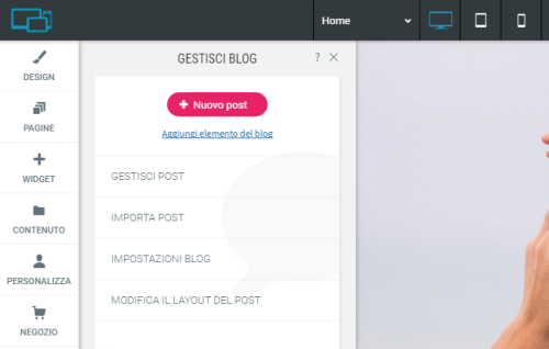 - importazione: una funzionalità dedicata a chi vuole risparmiare tempo e divenire rapidamente operativo importando contenuti da un sito Web preesistente o da Facebook;