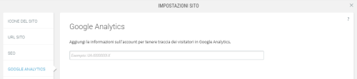 Google Analytics è un’ottima soluzione per monitorare il traffico prodotto da un Sito Web. Solitamente il servizio di Big G fornisce infatti statistiche dettagliate sulle performance generate dalle pagine tramite l’inclusione di un semplice codice da inserire all’interno di esse, ma nel caso dei siti Web creati con Simply Site basta seguire il percorso "Impostazioni > Google Analytics" e inserire nell’apposita casella di testo l’ID del proprio account.