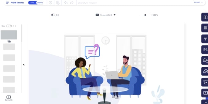 Indipendentemente dal tuo livello di abilitร o dall’attivitร che desideri svolgere, la creazione di animazioni con Powtoon consente di raggiungere ottimi risultati con poca fatica. Con questo tool online รจ possibile creare video animati sfruttando personaggi animati, modelli, sfondi video e colonne sonore presenti all’interno della libreria integrata. Creare video animazioni con Powtoon non richiede competenze di progettazione o di tecniche di animazione, tutto รจ gestito dall’applicativo all’interno di una interfaccia semplice ed intuitiva.