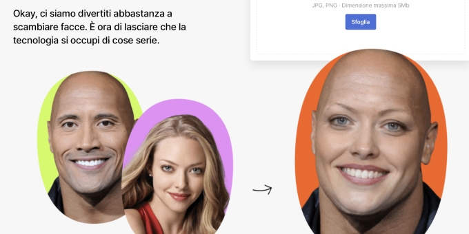 Questa applicazione online consente di scambiare, in modo semplicissimo e veloce, i volti delle persone all’interno di una fotografia! E’ possibile inserire persone all’interno di fotografie in cui non erano originariamente presenti con pochissimi click. Il sistema si basa sull’intelligenza artificiale e promette di cambiare automaticamente i volti nelle foto senza ridurne la qualitร . La risoluzione massima รจ 1024 pixel. E’ possibile cambiare anche piรน di un volto all’interno della stessa fotografia.