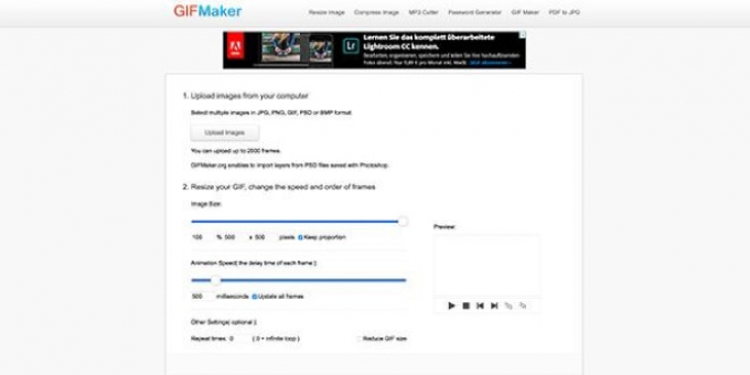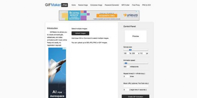 Attraverso il sito GifMaker.me รจ possibile creare gif animate in modo estremamente semplice: รจ sufficiente caricare le immagini che si desidera utilizzare (รจ possibile utilizzare fino a 300 immagini in formato JPG, PNG o GIF) ed impostare alcune opzioni come la dimensione della Canvas, la velocitร dell’animazione e il numero di ripetizioni.bE’ anche possibile aggiungere una base musicale (attraverso Youtube).