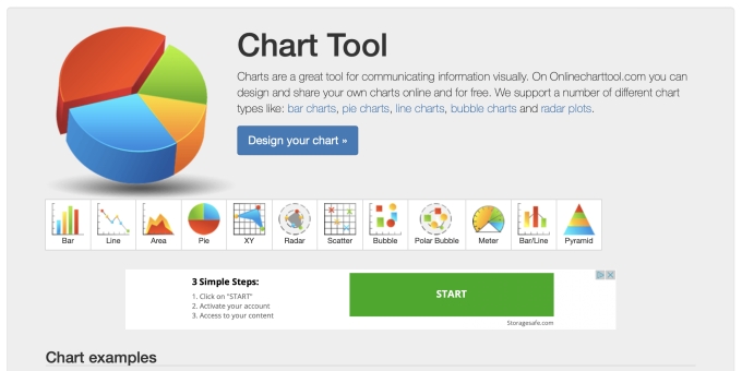 OnlineChartTool รจ un servizio online che consente di creare, in modo semplice e gratuito, grafici di diversi tipi. Il servizio supporta diversi tipi di grafici come: grafici a barre, grafici a torta, grafici a linee, grafici a bolle e grafici radar. La procedura per la creazione di un grafico รจ molto semplice: basta scegliere il tipo, caricare i dati (รจ possibile importarli tramite CSV), aggiungere le etichette e personalizzare i colori. Al termine della procedura sarร รฒ possibile visualizzare un’anteprima e, se soddisfatti, scaricare il risultato come immagine (PNG, JPG, SVG) o PDF.