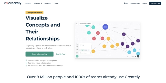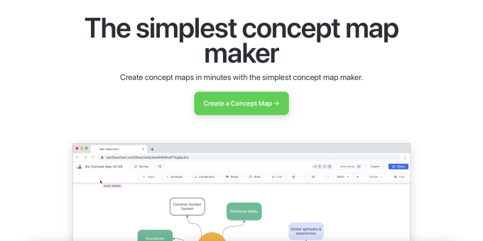 Creately รจ una suite di strumenti visuali pensati per migliore la collaborazione nei team di lavoro. Tra i tanti strumenti รจ disponibile un tool per la creazione di mappe concettuali online ch consente di organizzare concetti ed evidenziare le relazioni che li legano tra loro. La creazione di una mappa รจ piuttosto semplice, soprattutto se si sceglie di iniziare utilizzando uno dei tanti template pronti all’uso. La creazione e la personalizzazione della mappa รจ molto semplice grazie all’interfaccia basata sul drag & drop di forme predefinite. E’ anche possibile importare immagini e documenti per arricchire le mappe concettuali.