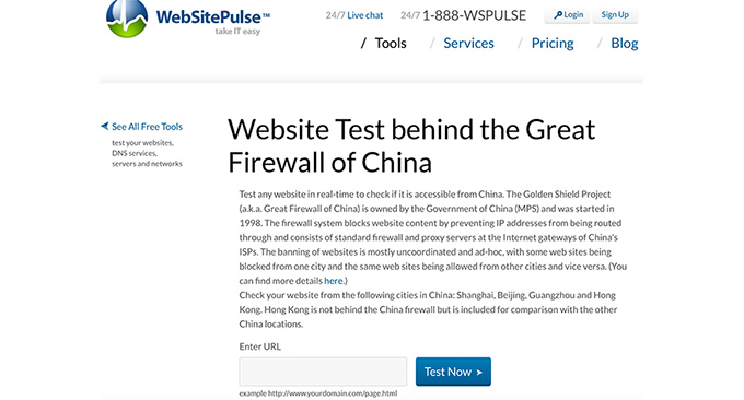 Come detto la presenza di un sistema di censura non rende scontata la raggiungibilità di un sito web in terra cinese. Per questo motivo può essere utile effettuare una verifica in tempo reale sullo stato di visibilità (o meno) di un sito web in Cina.