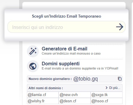 Come il precedente, anche questo è una tra le piattaforme più popolari in Rete per la creazione di email fake. È un servizio totalmente gratuito che ti consente di creare un indirizzo email con le credenziali che preferisci, utilizzando uno tra i diversi domini generati dal sito. Inoltre questa piattaforma non cancella gli indirizzi email generati e conserva per ben otto giorni la casella di posta, in modo da poter recuperare eventuali email importanti. Per utilizzare questo servizio basta accedere al sito web yopmail.com/it/, inserire l’indirizzo email temporaneo e il dominio che vuoi utilizzare ed il gioco è fatto!