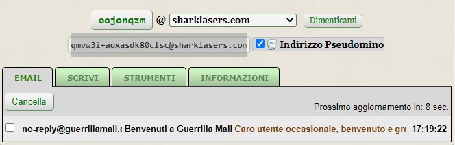 Accedendo al sito guerrillamail.com/it/ si aprirà un pannello di controllo semplice ed intuitivo, comprensivo di email temporanea generata automaticamente, che ti permetterà di usufruire dei servizi offerti da questa piattaforma.