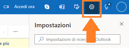 Per creare un alias con Outlook dovrai recarti sul sito outlook.live.com ed effettuare il login con le tue credenziali. Dopo di ché dovrai cliccare sull’icona delle impostazioni (in alto a destra):