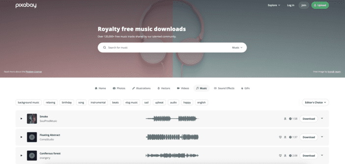 L’area della musica su Pixabay offre una vasta selezione di brani musicali Royalty Free, suddivisi in diversi generi musicali, come rock, jazz, elettronica, classica e molti altri. La ricerca dei brani รจ facile e intuitiva grazie al sistema di filtraggio del sito, che permette di selezionare i brani in base al genere. E’ anche possibile accedere alla selezione “Editor’s Choice” con “il meglio” della selezione musicale.