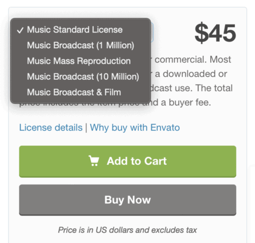 Per quanto riguarda i costi, AudioJungle utilizza un modello di pagamento per singolo brano: gli utenti acquistano la licenza di un brano specifico e possono utilizzarlo pagando un prezzo che varia in base all’utilizzo previsto e al numero di copie (il pacchetto base copre fino a 10.000 copie se il brano รจ utilizzato per un prodotto fisico). AudioJungle offre anche pacchetti di brani musicali, che permettono di acquistare piรน brani a prezzi scontati.