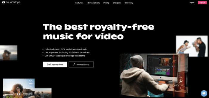 Soundstripe รจ una piattaforma online di musica Royalty Free che offre una vasta gamma di brani musicali di alta qualitร per uso commerciale o personale. La piattaforma รจ stata fondata nel 2016 e da allora ha attirato numerosi clienti, tra cui aziende, registi, creatori di contenuti e molto altro.