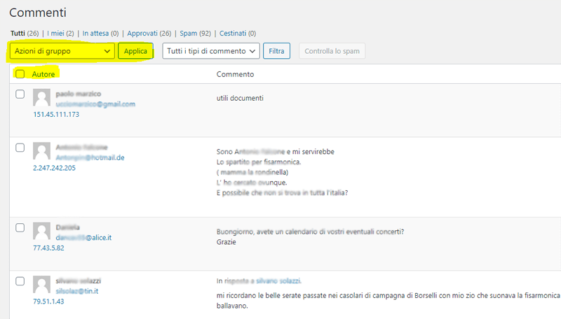 In questo modo tutti i commenti selezionati saranno eliminati e non saranno piรน visibili nei vari articoli.
