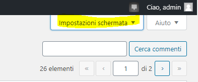 Per velocizzare le operazioni e visualizzare un numero maggiore di articoli su ogni schermata, apportare le modifiche in “Opzioni schermata” presente in alto a destra.