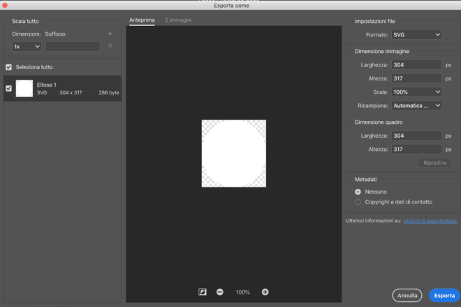 Esportare in SVG nelle versioni recenti di Photoshop (CC 2015 e successive versioni)