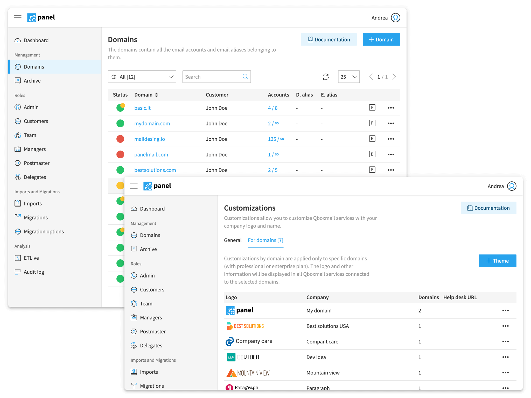 L’opportunità di delegare parte dei propri compiti è però indispensabile quando non si dispone ancora del dono dell’ubiquità. Il Panel di Qboxmail permette, fortunatamente, di sfruttare un avanzato sistema per la gestione multilivello affidando il controllo degli account email aziendali ai collaboratori, concedendo loro l’accesso a tutte o solo a determinate funzionalità e definendo in modo accurato i limiti suggeriti dalle varie esigenze in termini di riservatezza e sicurezza.