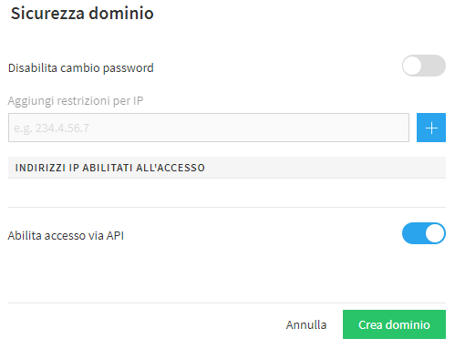 Una volta settate le opzioni dedicate alla sicurezza non rimane altro che cliccare su "Crea dominio" per generare il dominio desiderato.
