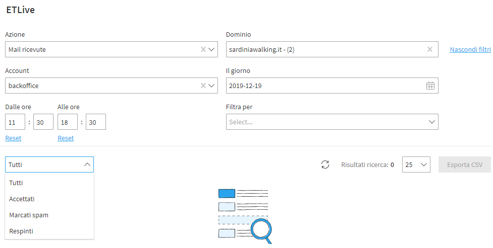 ETLive permette di analizzare in tempo reale i log del traffico email sia in entrata che in uscita.