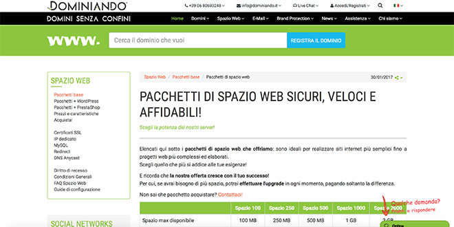 Dominiando S.r.l. – Tel.: 06.80693248 – Dettagli dell’offerta: www.dominiando.it/spazioweb/pacchetti.html
