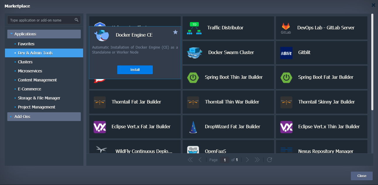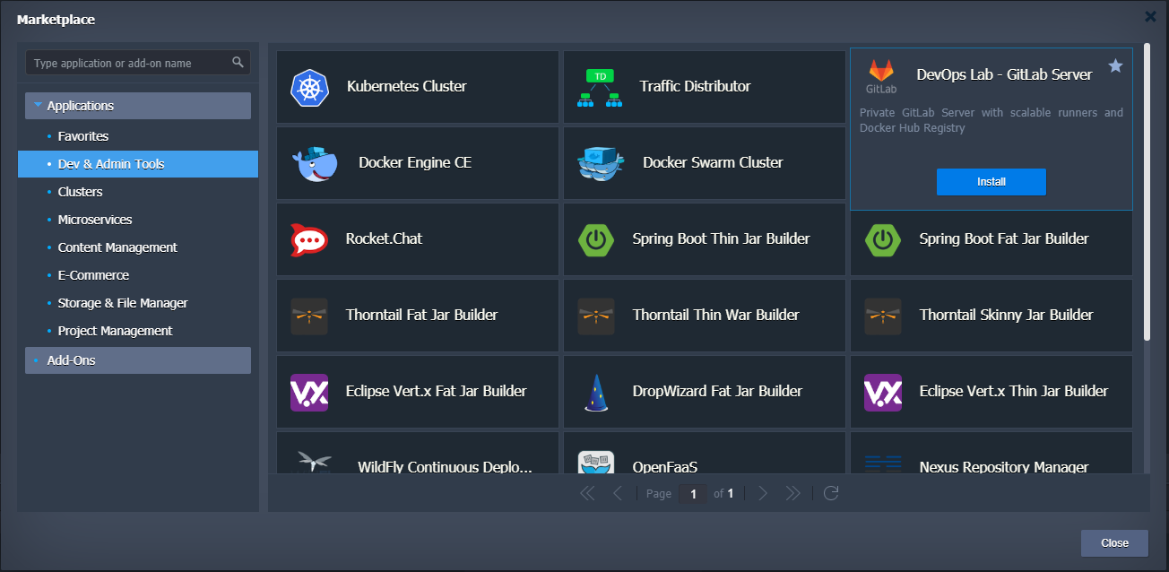 Il catalogo è particolarmente ampio e presenta tool per Developer e Amministratori di sistema, comprese le soluzioni più comuni per la gestione e l’orchestrazione dei container Docker (Kubernetes, Docker Swarm..), nonché cluster, microservices, CMS, framework, e-commerce engine e software per il management di file, storage e progetti.