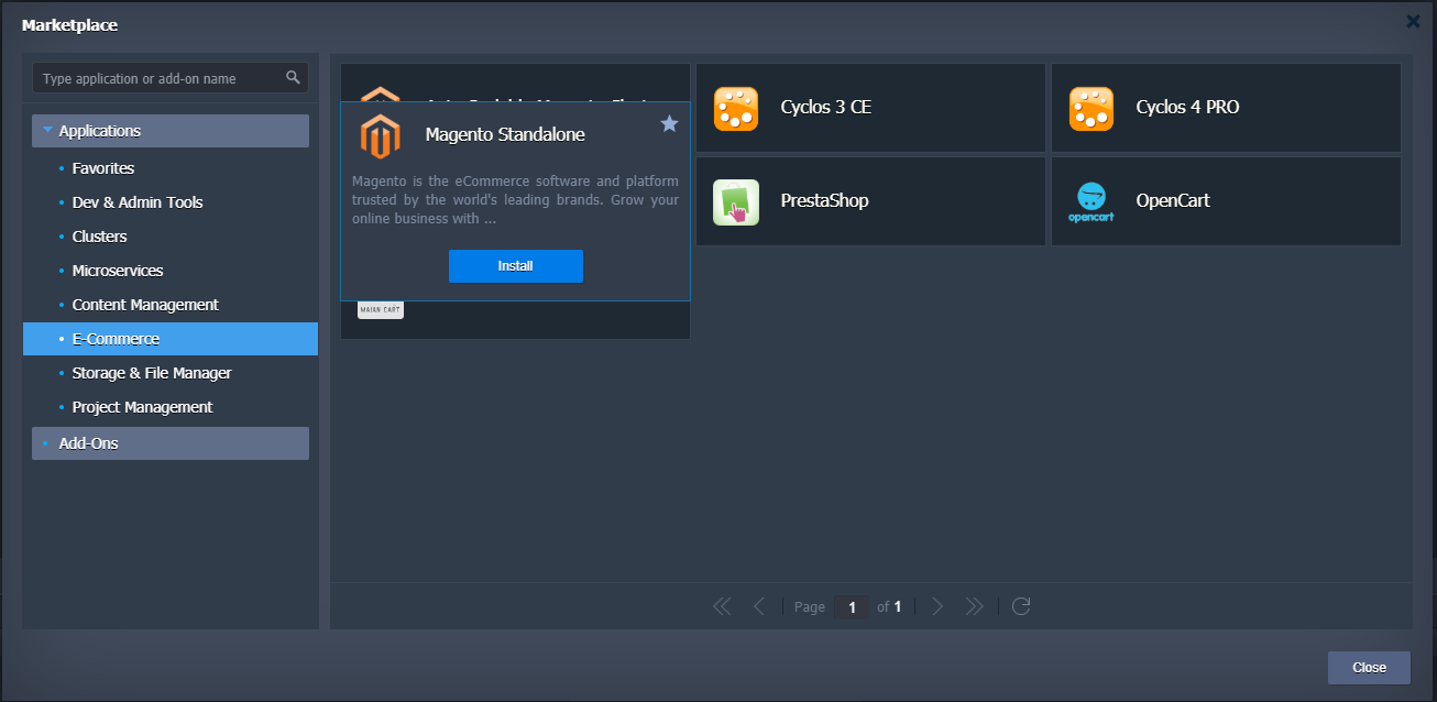 Per questo motivo il marketplace di Jelastic Cloud offre la possibilità di installare diversi e-commerce engine tra i più utilizzati per la realizzazione di uno store online. Fra le soluzioni proposte abbiamo per esempio Magento, CMS Open Source basato sullo Zend Framework che consente di creare e gestire piattaforme di commercio elettronico basate su PHP e MySQL.