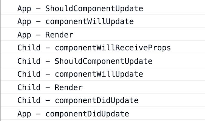 In questo caso avremo però un metodo aggiuntivo: ComponentWillReceiveProps(). React non invoca questo metodo in fase di inizializzazione di un componente. Viene invece invocato solo successivamente, nel momento in cui nuove Props vengono passate a un componente. Può essere utilizzato per aggiornare e modificare l’oggetto State all’interno di un componente se le nuove Props ricevute sono diverse dalle proprietà dell’oggetto Props corrente.