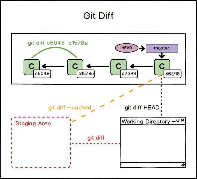 Il comando git diff permette di confrontare due entità e mostrare le informazioni in merito alle modifiche presenti fra le due. Possiamo per esempio comparare due file oppure due commit. È anche possibile visualizzare che tipo di modifiche sono state introdotte in un certo file fra un commit e l’altro. Il comando git diff consente di visualizzare pure le differenze fra i file della Staging Area e della Working Directory. Vediamo alcuni dei casi tipici in cui viene usato.