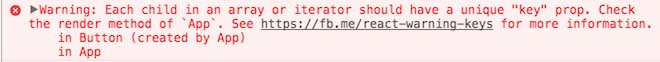 Applichiamo la funzione Array.prototype.map() all’array colors. Ad ogni iterazione Array.prototype.map() riceve come primo parametro un elemento dell’array colors e restituisce un React Element costruito utilizzando il componente Button da noi definito. Al termine della funzione map(), la variabile buttons sarà un array di Elementi React. Tramite interpolazione, inseriamo i pulsanti all’interno di un elemento div. Se aprite la console degli strumenti per sviluppatori del browser, noterete però un errore.