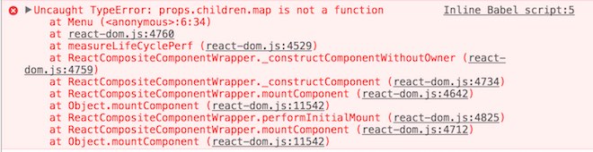 Nel secondo caso abbiamo un singolo oggetto e, quindi, non è possibile invocare la funzione Array.prototype.map() visto che in questo caso props.children non è un Array.